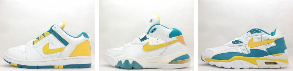 HECTIC がカラー提案を行った2002年リリースの AIR FORCE Ⅱ ( 左 )、AIR FORCE MAX ( 中 )、AIR TRAINER SC LOW ( 右 )。当時、窪塚洋介さんや故山本キッドさんなども好んで愛用していた ( 画像引用:SKIT )