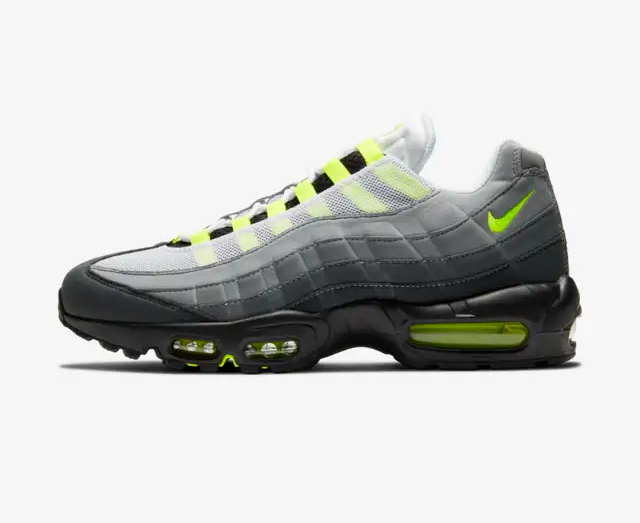 ネオンイエローのグラデーションカラーと人体に着想を得て製作された未来感のあるデザインで、爆発的な人気を誇った AIR MAX 95。もとを正せば、このブレイクも裏原宿、特に HECTIC の店員さんたちが履いたことから生まれていた( 画像引用:NIKE )
