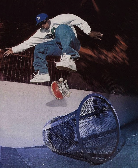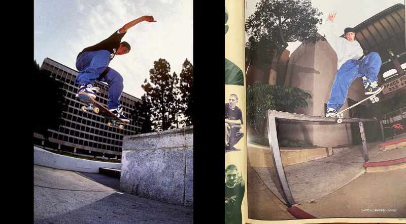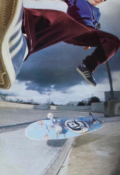 当時のスケーターの足元は、VANS や AIR WALK( エアウォーク )といったスケートシューズブランドのものが主流だったはずだから、このローテクシューズを履くマイク・キャロルは異色な感じというか、アンテナの感度が高い感じがするよね