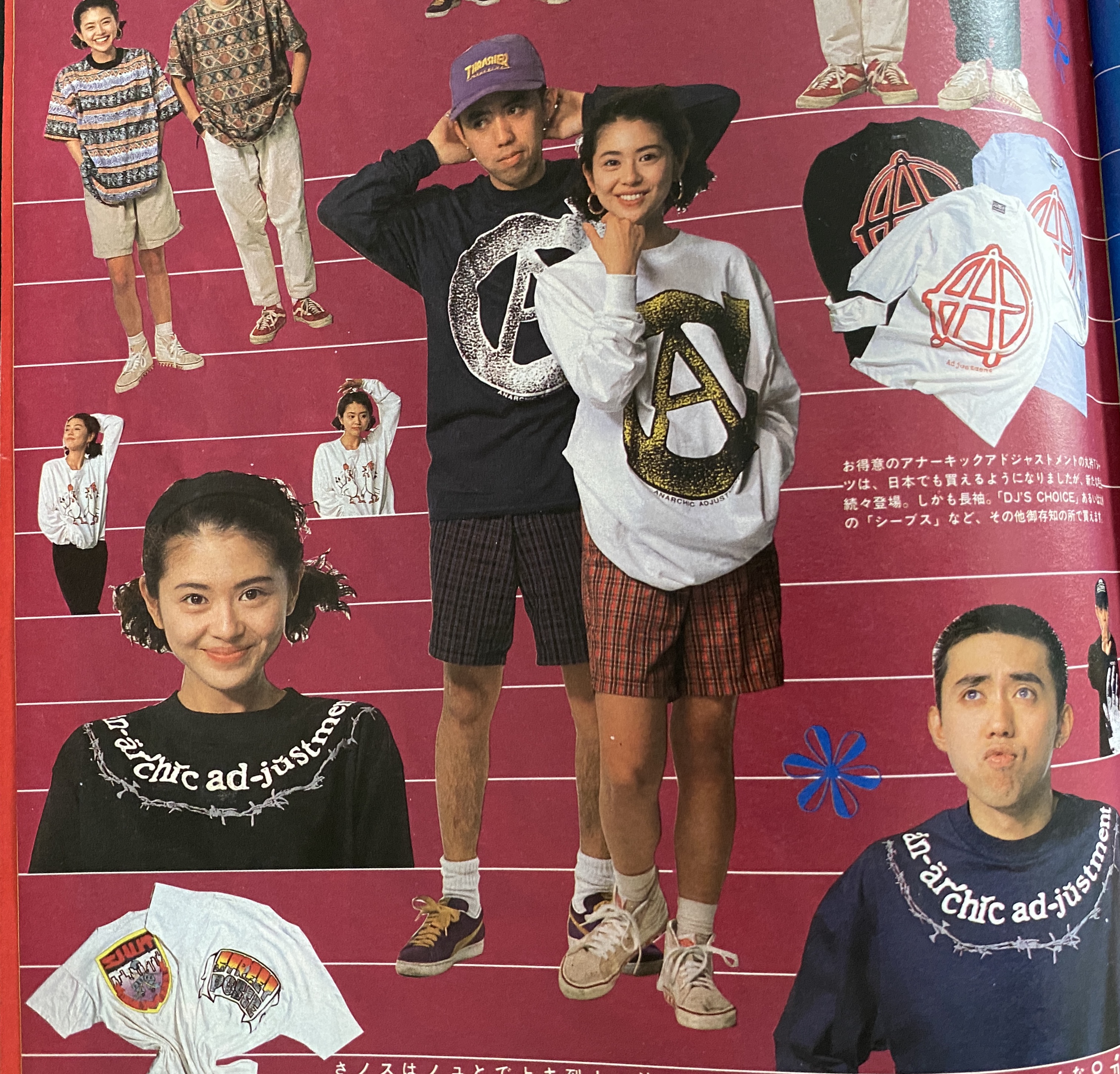だから、『キューティ』の藤原ヒロシさんの連載で紹介されるカルチャーもそうだけど、完全に異端というか、特殊枠みたいな感じ。これが世間一般の若い人達のファッションの大半を占めるものじゃなくて、ほんとにマイノリティ。そんなアングラ層の人達が好んでいたもののひとつにアナーキック・アジャストメントがあったと思うんだよね
