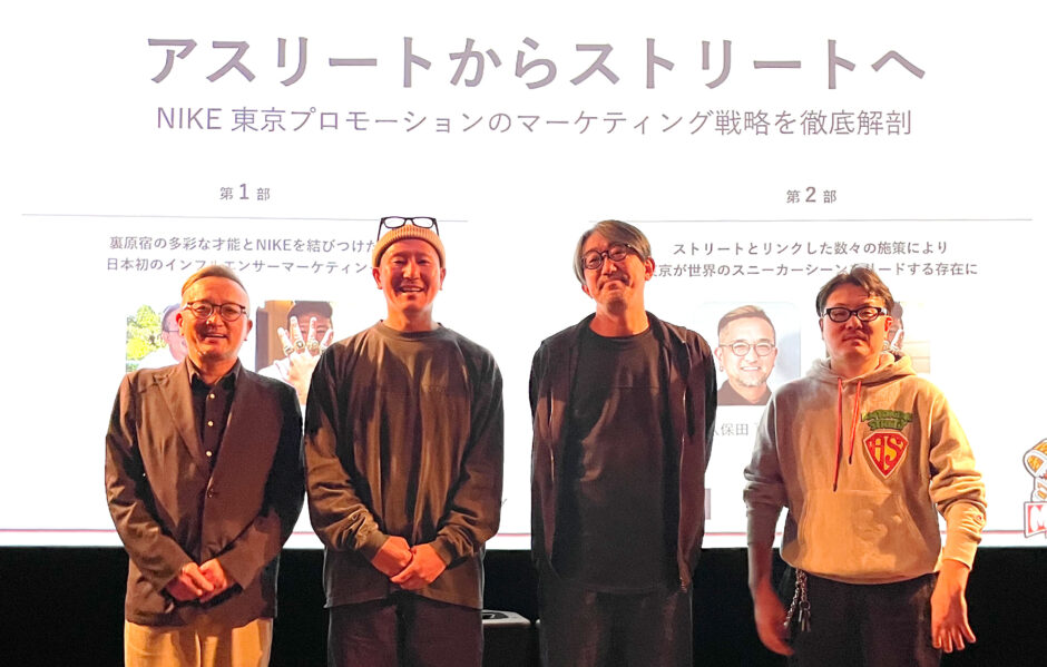 東京プロモーションを立ち上げた張本人である坂井秀彦さんと、その坂井さんのもとで活躍した秋元凛太郎さんに登壇いただき、 NIKE がストリートでプレゼンスを高められた理由について解説いただきました。