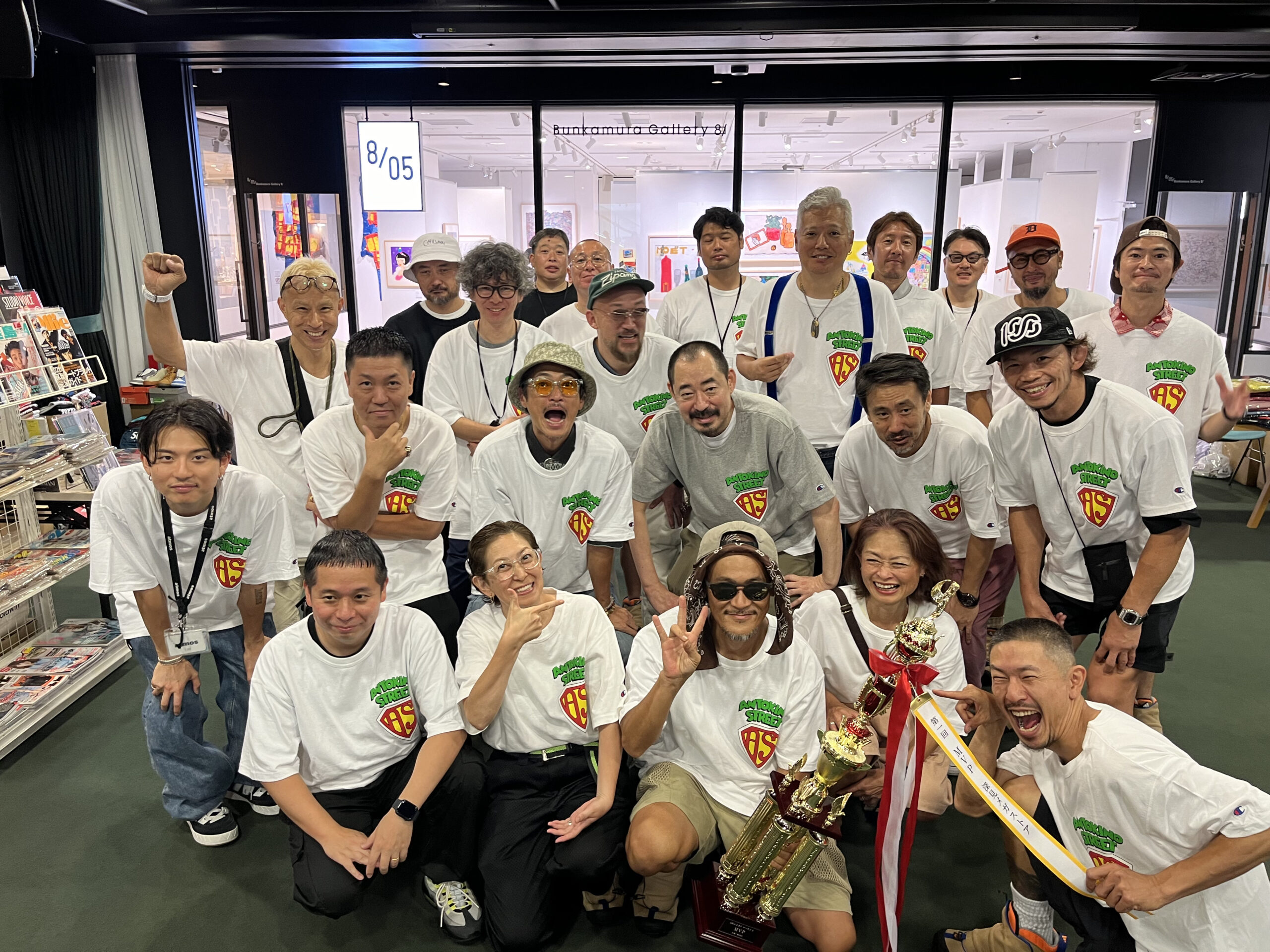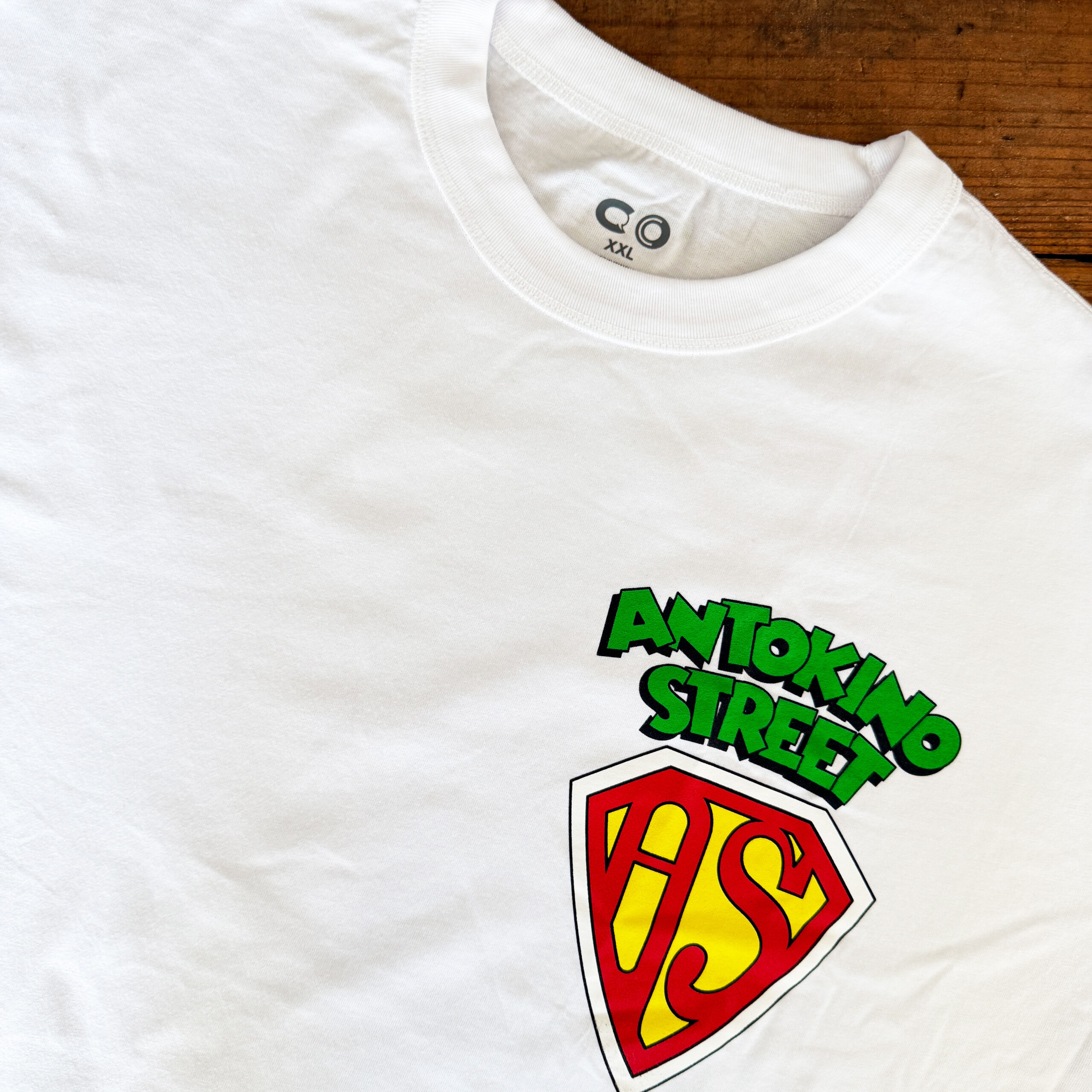 左胸には「 MASTERPIECE SOUND 」仕様の「 ANTOKINO STREET 」ロゴをプリント。あ、とはいってもボクたちがファミリーマートを数十件回って買い集めてきたビッグシルエットTシャツに勝手にプリントしたものなので、コラボでとかじゃないのでご注意を。