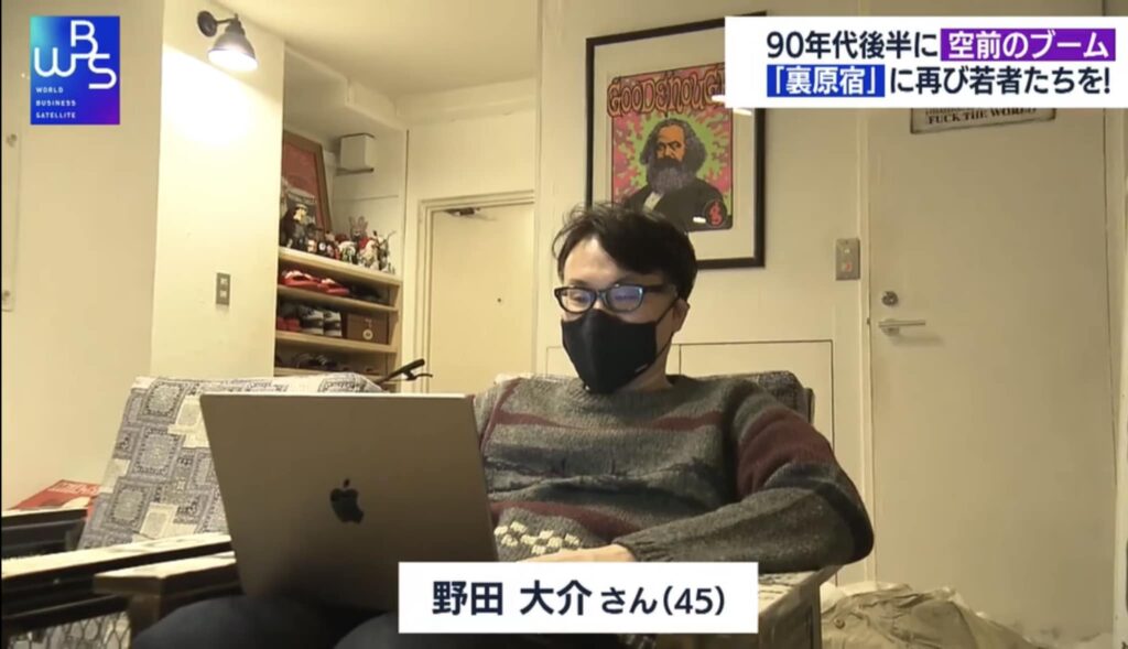 先日、原宿神宮前商店会の会長で、ウラハラプロジェクトのリーダーを務める早川千秋さんにお声がけいただいて、僭越ながらテレビ東京のビジネス番組「 WBS( ワールドビジネスサテライト )」の裏原特集に出演させてもらったんだけど、今の裏原にはZ世代を中心とする若い才能が再び集まり出していて、ボクらが足繁く通った’90年代の裏原とは当たり前だけど、ガラッと雰囲気を変えているんだよね
