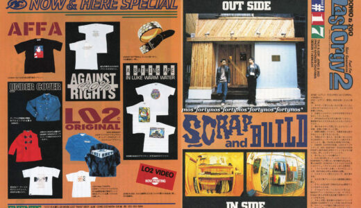 ネイバーフッドの移転の様子を伝える’95年の「 LAST ORGY 3 」。店前に並んだ、カスタムされた SR などのバイクがネイバーフッドらしい。最新作としてネイバーフッドが別注をかけた Forty Percent Against Rights ( フォーティー パーセント アゲインスト ライツ ) のフリースウエアが紹介される