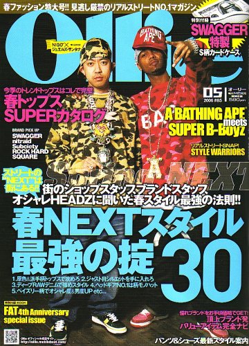 その頃は Pharrell Williams ( ファレル・ウィリアムス ) や Lil Wayne ( リル・ウェイン ) あたりがよくA BATHING APE ( ア・ベイシング・エイプ ) を着てた時代で、ちょっと逆輸入っぽい見え方で取り上げられてたと思います