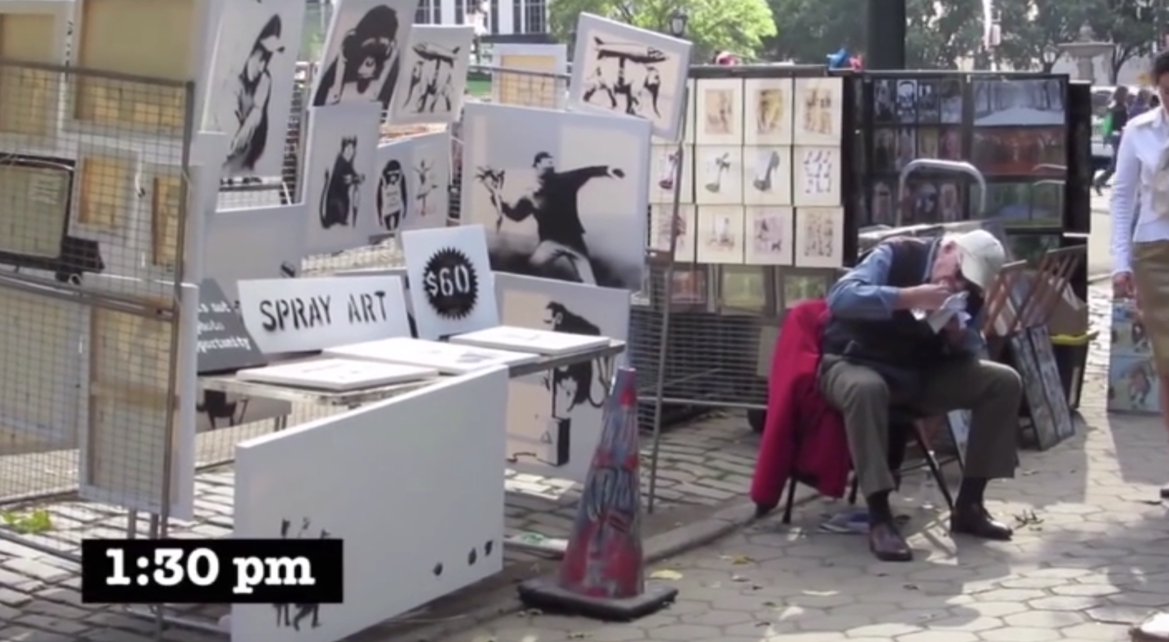 で、そんな人たちをあざ笑うかのようにバンクシーは、セントラルパークの露店にオリジナルの作品を並べるんです。その価格が1つ60ドル。当然みんなは本物なんて思わないので素通り。で、やっと売れたのが2枚。でも半額に値切られるという (笑)。
