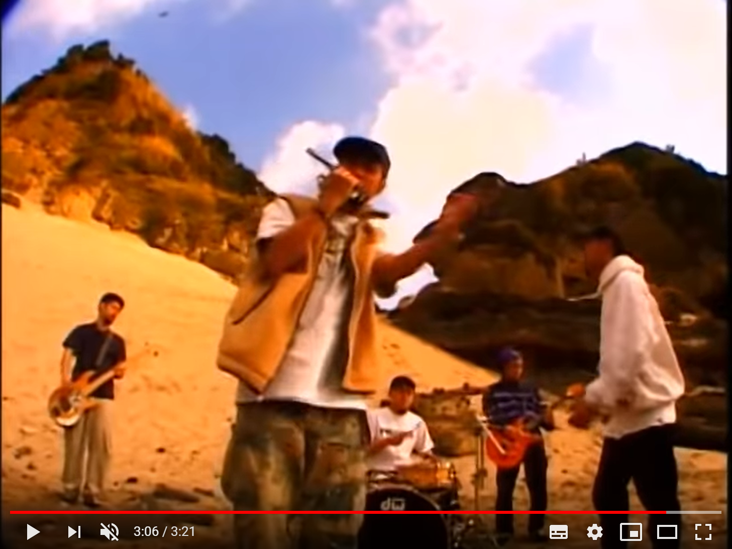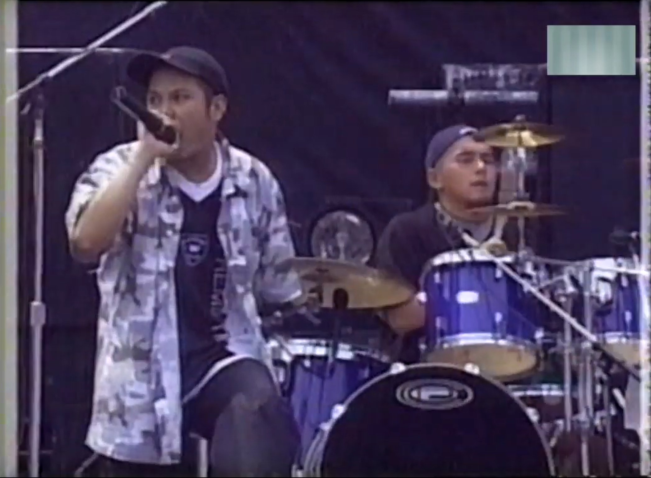 あとビーニーかジェットキャップ斜め被り、軍パンの印象は強いですね。これはオーリーのスナップなんですけど、GMF解散ライブって書いてるので、98年ですね