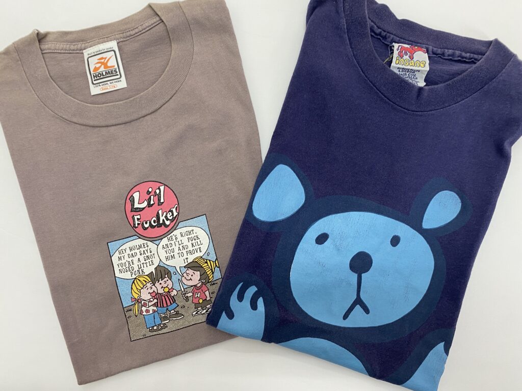 最初期にリリースされた HOLMES のファーストTシャツ(左)と insane のオリジナルTシャツ
