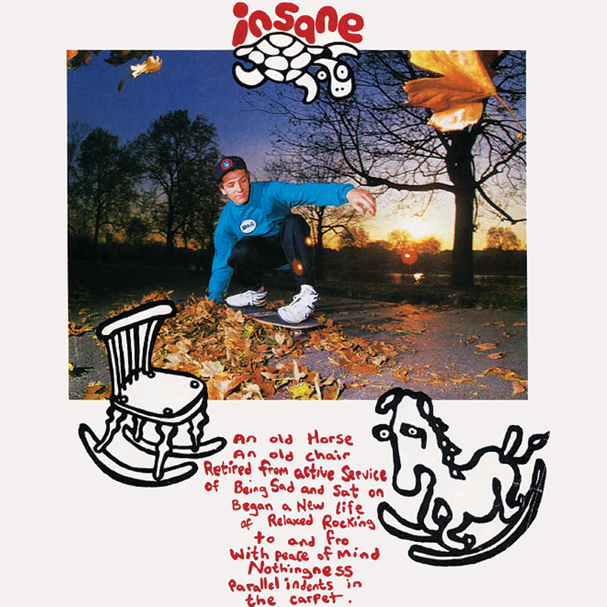 1991年1月号の「 HFA 」で初お披露目となった insane。藤原ヒロシさんによりイギリスのスケートマガジン『 RAD 』で発見されたのが紹介のきっかけ( 雑誌『 CUTIE 』より )
