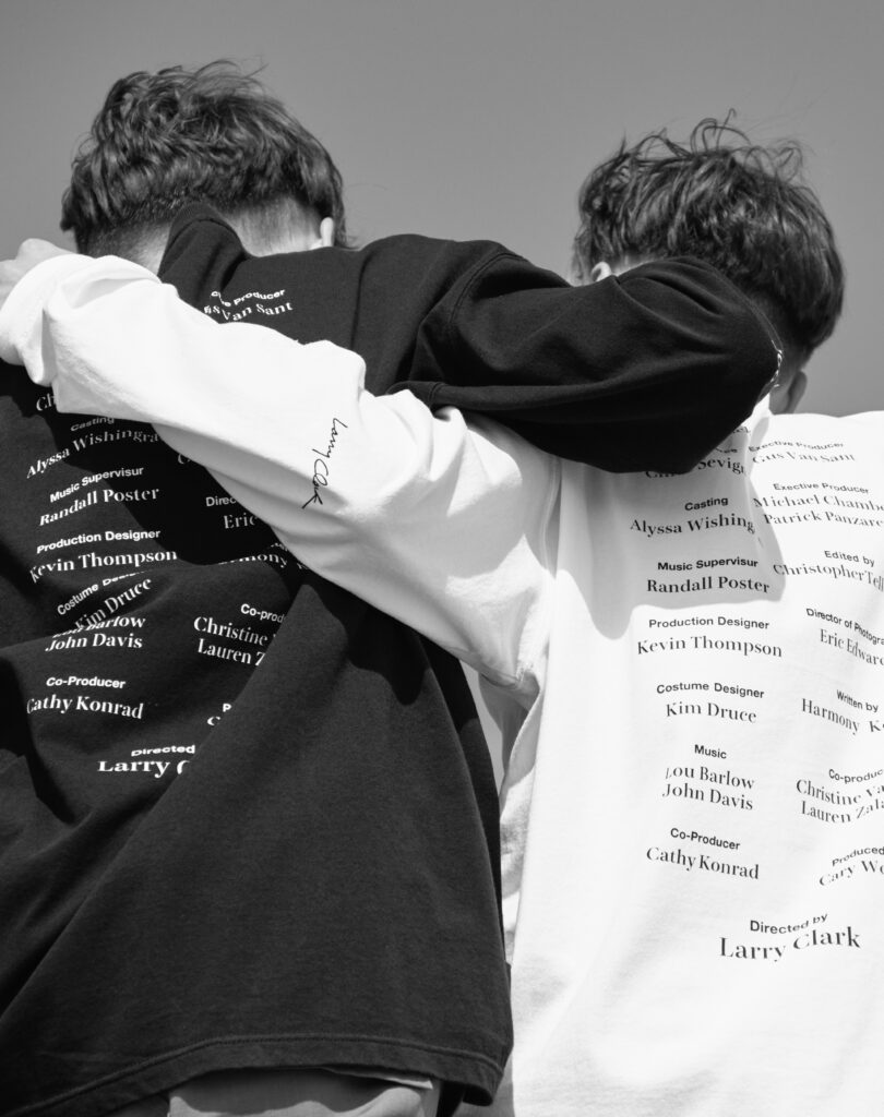 それと、TシャツとロンTの背面には、ガス・ヴァン・サントやクロエ・セヴィニーといった制作陣やキャストのクレジットを載せる許可も得ています。これも新しい試みです。他にも日本製のオリジナルボディを使い製品洗いをかけてプリントのトーンを馴染ませてたりして、とにかく着心地良く製作していますから、数年後にはプリントのカスレ具合なども味になり、将来はヴィンテージとしても楽しめるアイテムに仕上げています