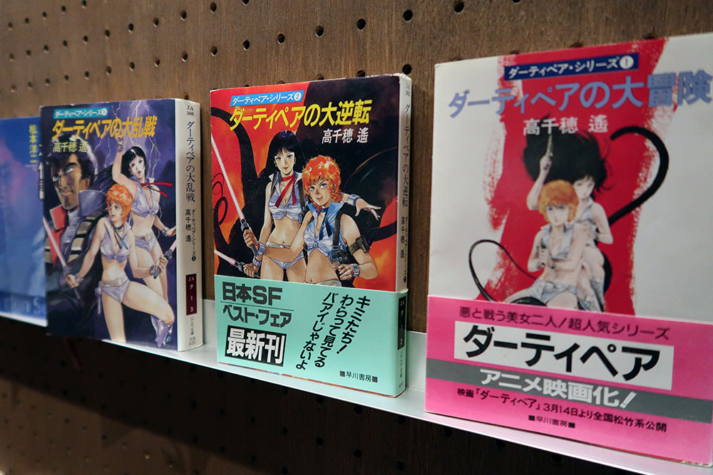 その昔、アニメイトなんかで売ってた名作下敷きの数々を階段に展示!