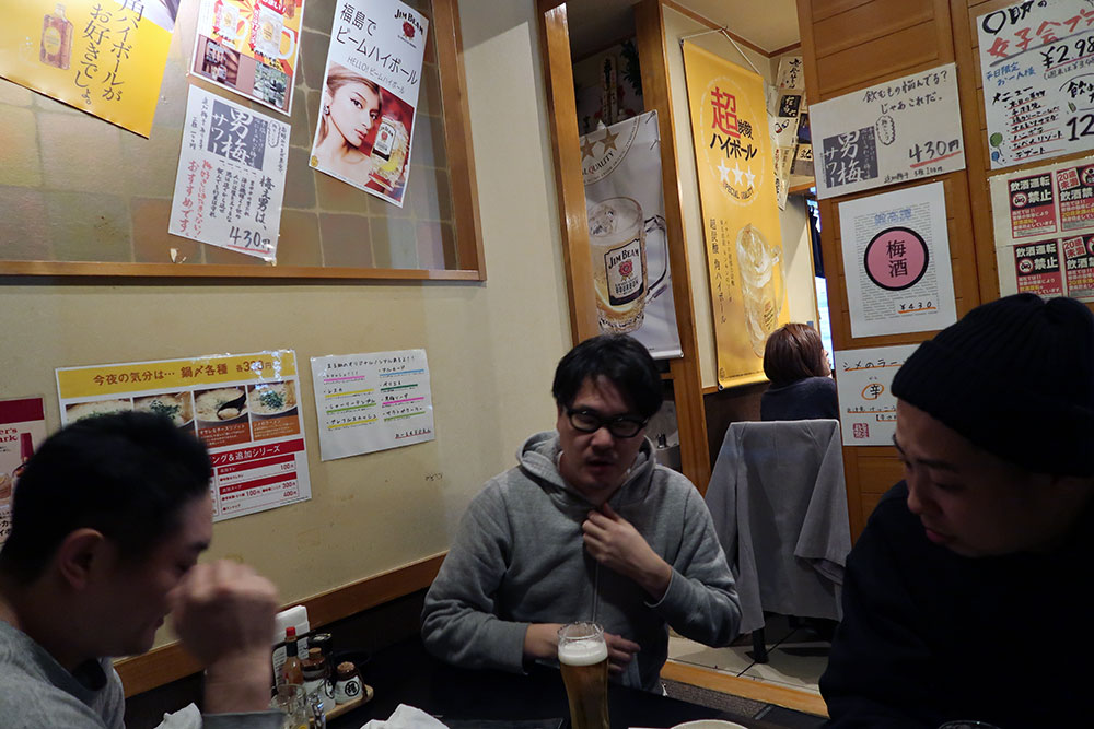 そんな客引きのアニキに教えてもらった、朝まで営業してる居酒屋でようやく落ち着く我々。続々と店に入ってくる仕事あがりのおねーちゃんたちを横目に、明日の予定をミーチング。