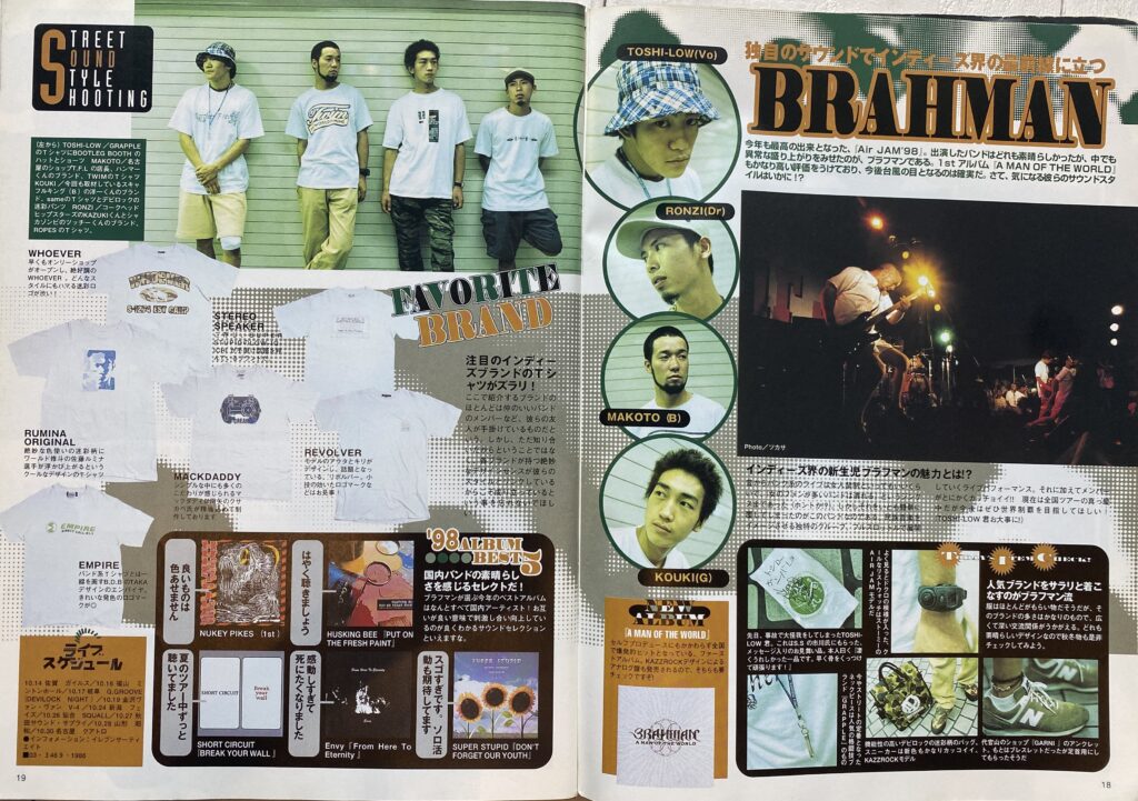 最初は、やっぱりバンドがバックボーンにあったというのが大きいよね。BACK DROP BOMB や BRAHMAN 、市川くん( =LOW IQ 01 )といった友人がライブで着てくれて、雑誌にも載るわけじゃない。そうすると、反響がすごいのよ! でも、それは戦略的にやってたというわけじゃなくて、友だちが遊びに来てくれたら、田舎にいる近所のおじさんみたいに「 これも持ってけよ! 」ってあげてただけなんだけどね(笑)