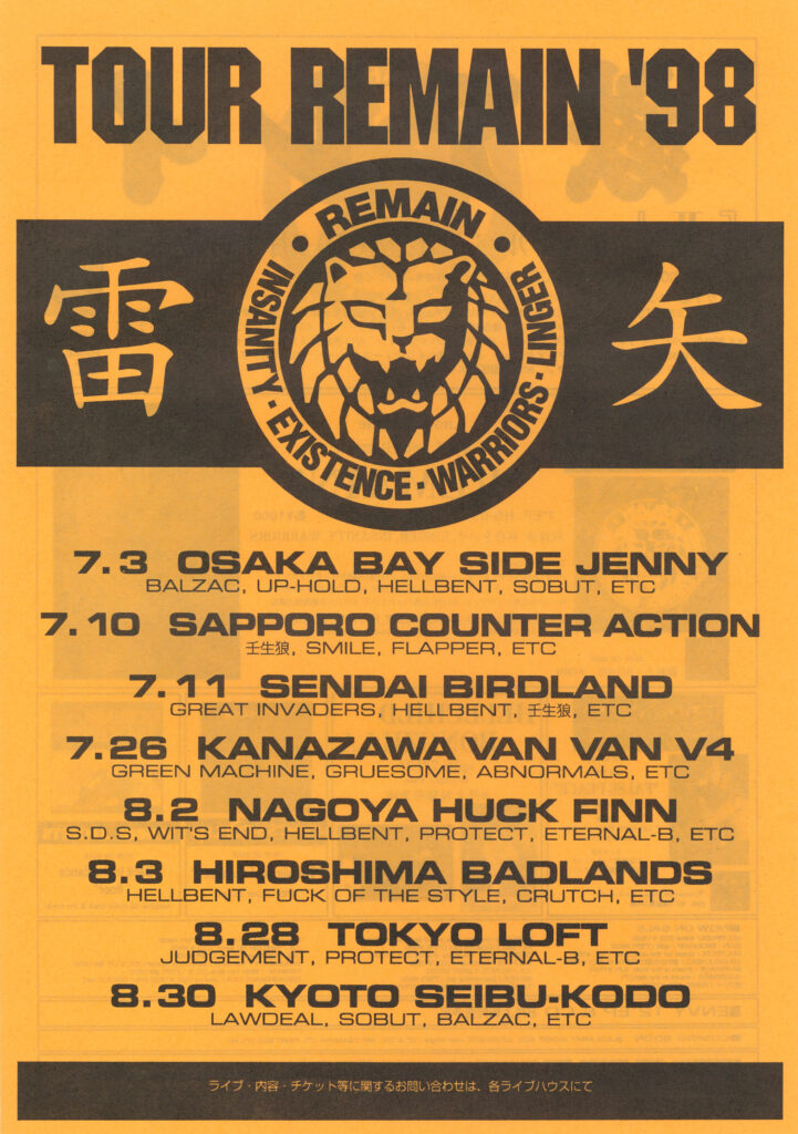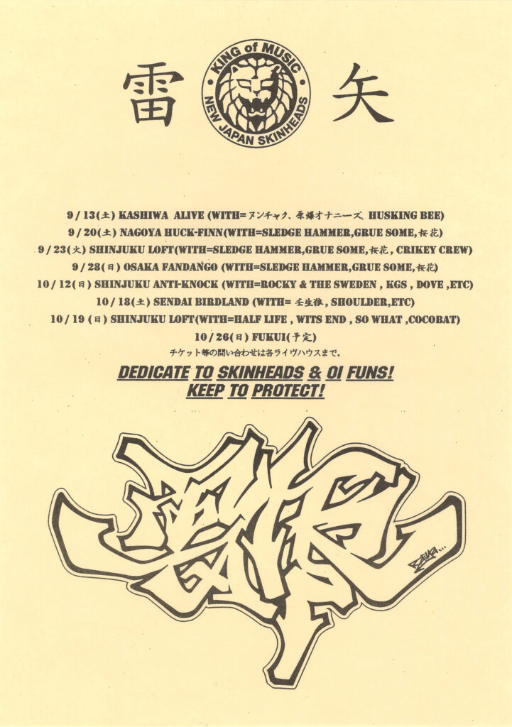 93年には雷矢を結成。こちらは貴重な 《 あんとき 》 のフライヤーと1st 7インチシングル