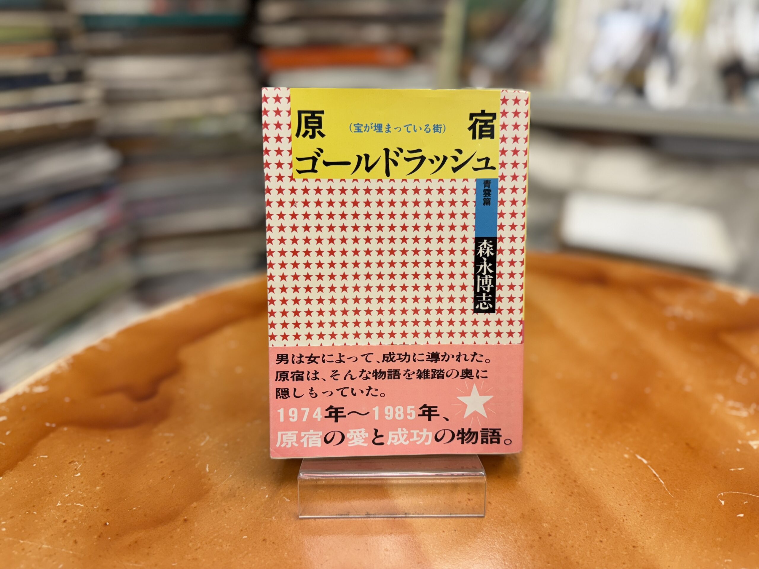 続いて紹介するのは『 原宿ゴールドラッシュ 青雲篇 』( ワニブックス )です。これは、原宿のロカビリー文化を語るうえで外せない存在、クリームソーダ/ピンクドラゴンの生みの親・山崎眞行さんの半生を追った本です。編集者/作家の森永博志さんが聞き書きの形でまとめたもので、版元や版によって微妙に内容が異なる複数のバージョンが存在します。うちの店にもこのあたりに詳しいお客さんが多いので「 この版とこの版では書いてあることが違うんだよな 」みたいな話を聞くこともあります