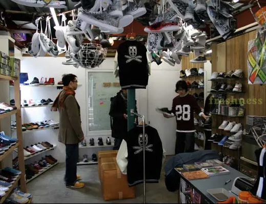 うん、元々ミロス ( MILOS GARAGE ) のセキュリティをしていたので当時から裏原界隈の方と仲良かったみたいで、JONIOさんとは一緒に住んでたんだって。その繋がりからノーウェアの内装に繋がったっていったんだろうけど。
