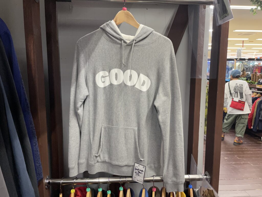 いきなり、目に飛び込んできたのは GOOD ENOUGH ( グッドイナフ ) のロゴプリントが背面に施されたパッチワークシャツ!《 あんとき 》にはラルフローレンがリリースしたことでブレイクしたパッチワークですが、グッドイナフとの邂逅により、いっそう魅力的なアイテムになっています。