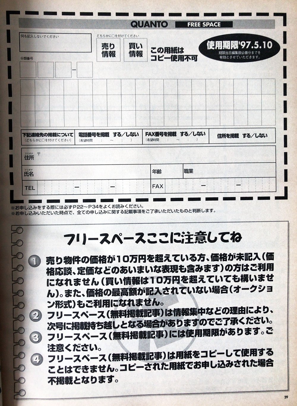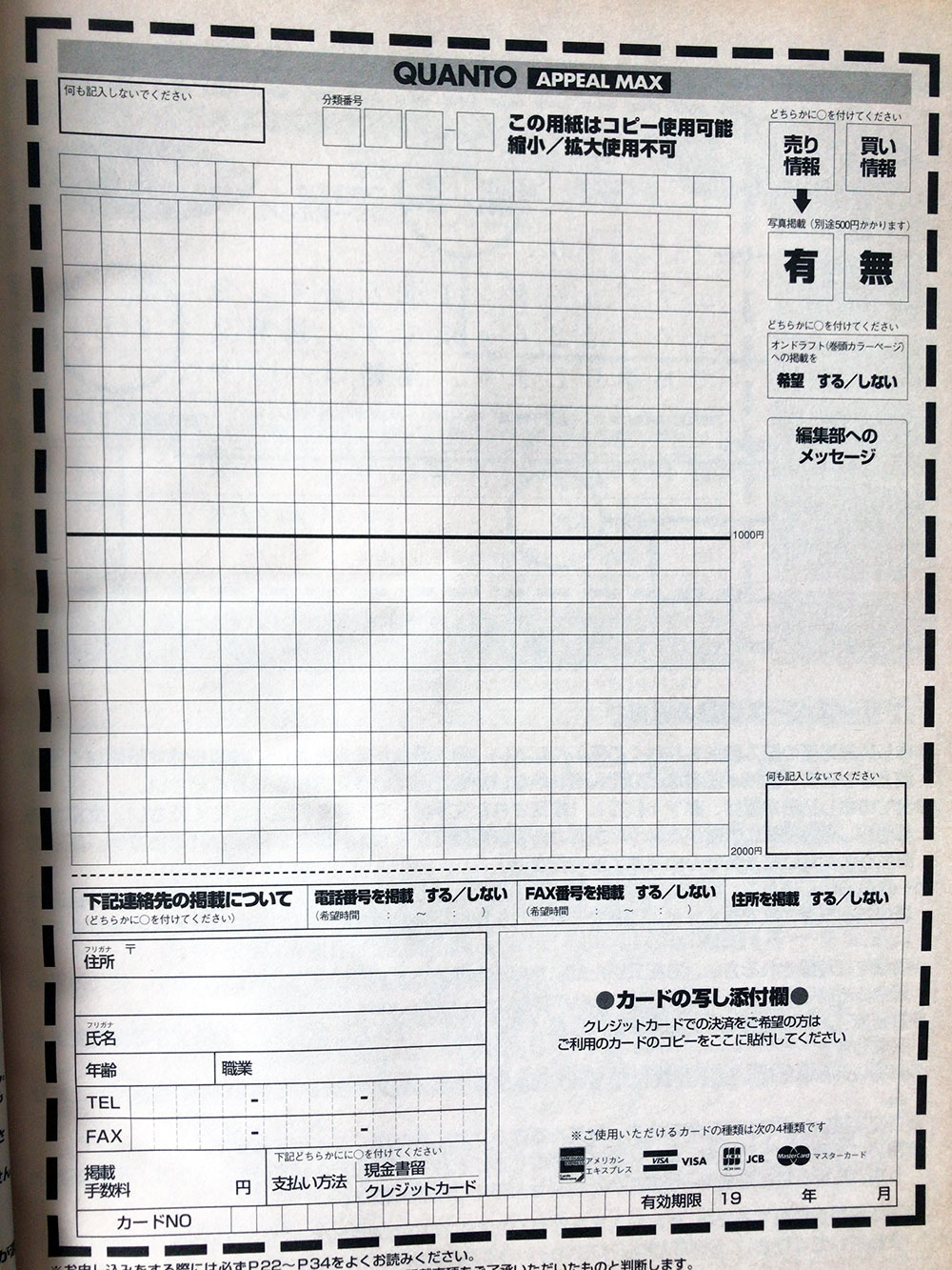 申し込み用紙にクレジットカードのコピーを貼って、掲載費用が決済されるってのもなかなかの荒技だね (笑)