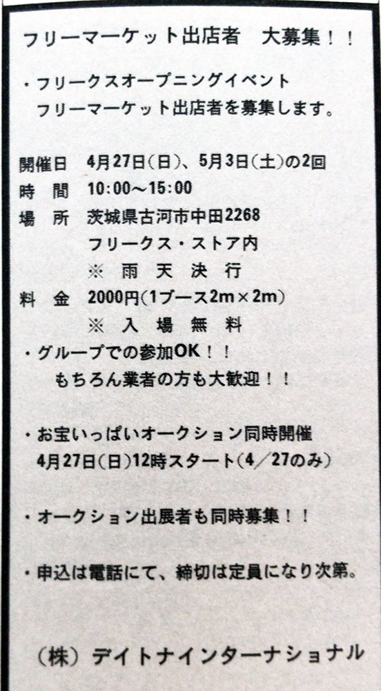フリークス がフリーマーケットの募集してる。時代感じますね。