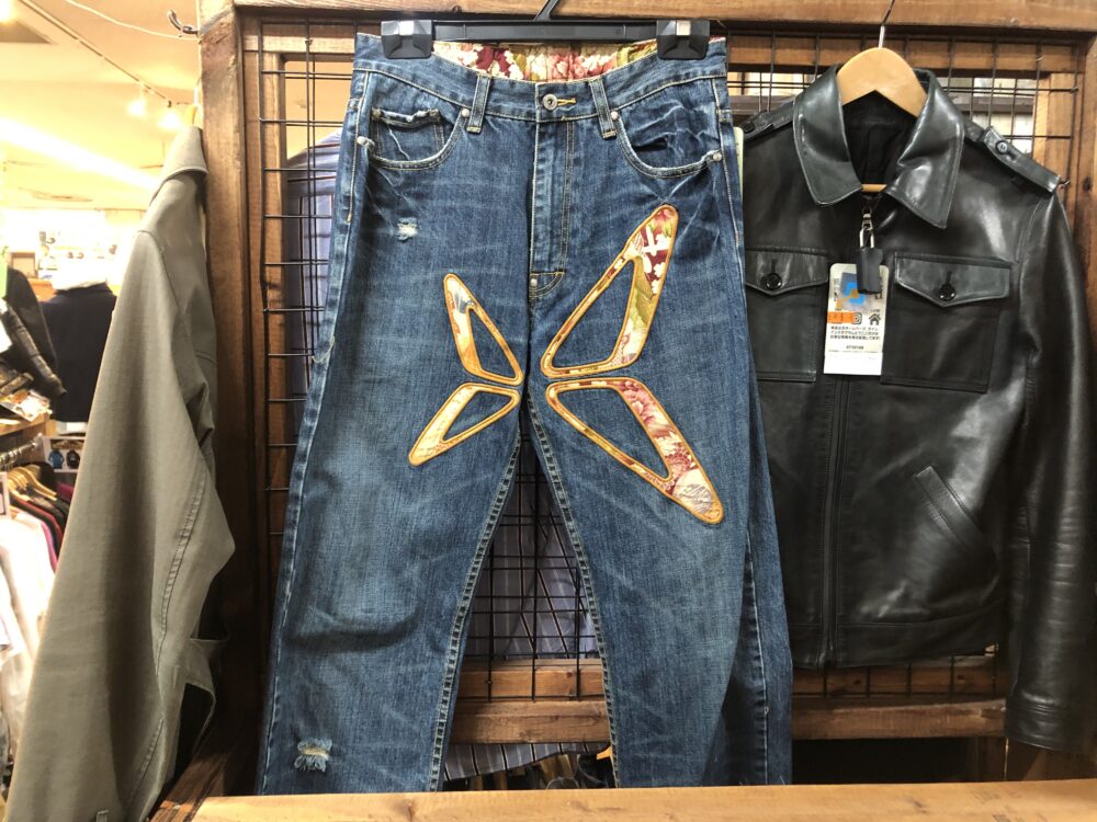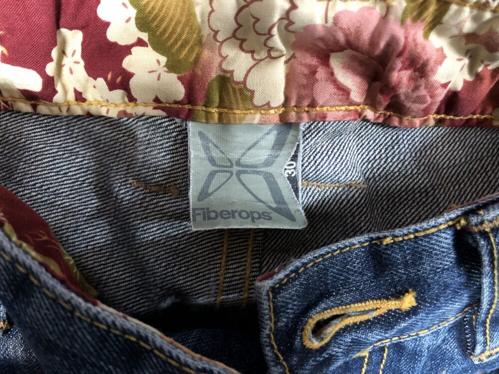 おぉぉ!Fiberops ( ファイバーオプス ) じゃないですか。しかもロゴがデカデカと入ったこのデニムはイメージ通りのブツ。2002年の登場で、当時人気だった香港のフィギュア・アーティストのマイケル・ラウとナイキとのコラボでフィギュア作ってましたよね。