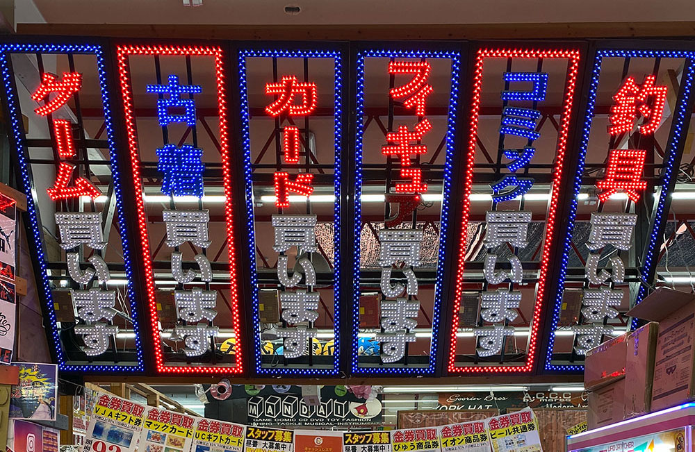 店内にはいるとブレードランナーの世界。ポップもネオンもゲームもレジも……、カッコイイとかオシャレを度外視したごった煮の店内だからこそ漂う「何か出てきそう」という雰囲気。これこそがハンターたちを引き寄せる撒き餌となる。