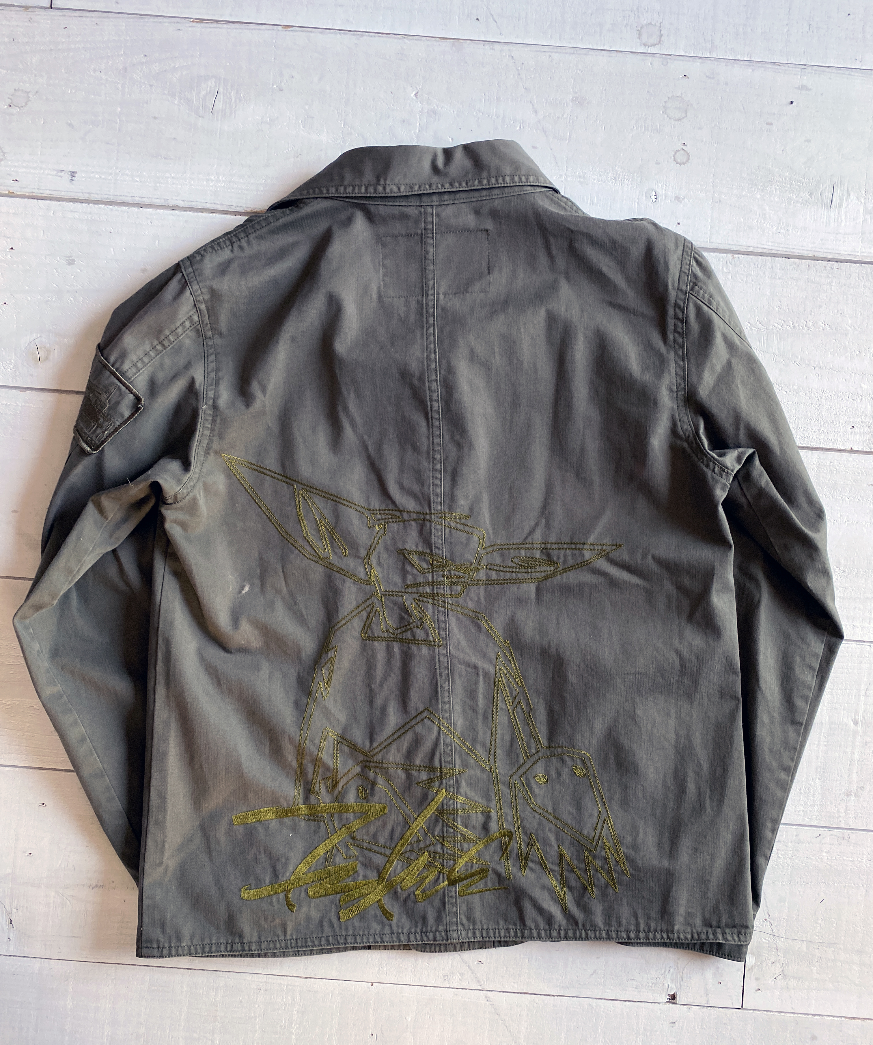 極め付けはフューチュラ・ラボラトリーのシャツ。両胸についたタギングのロゴとオービットだけでもアツいのに、背中にはポイントマンの刺繍がデカデカと。そのお値段なんと1,000円ポッキリ!